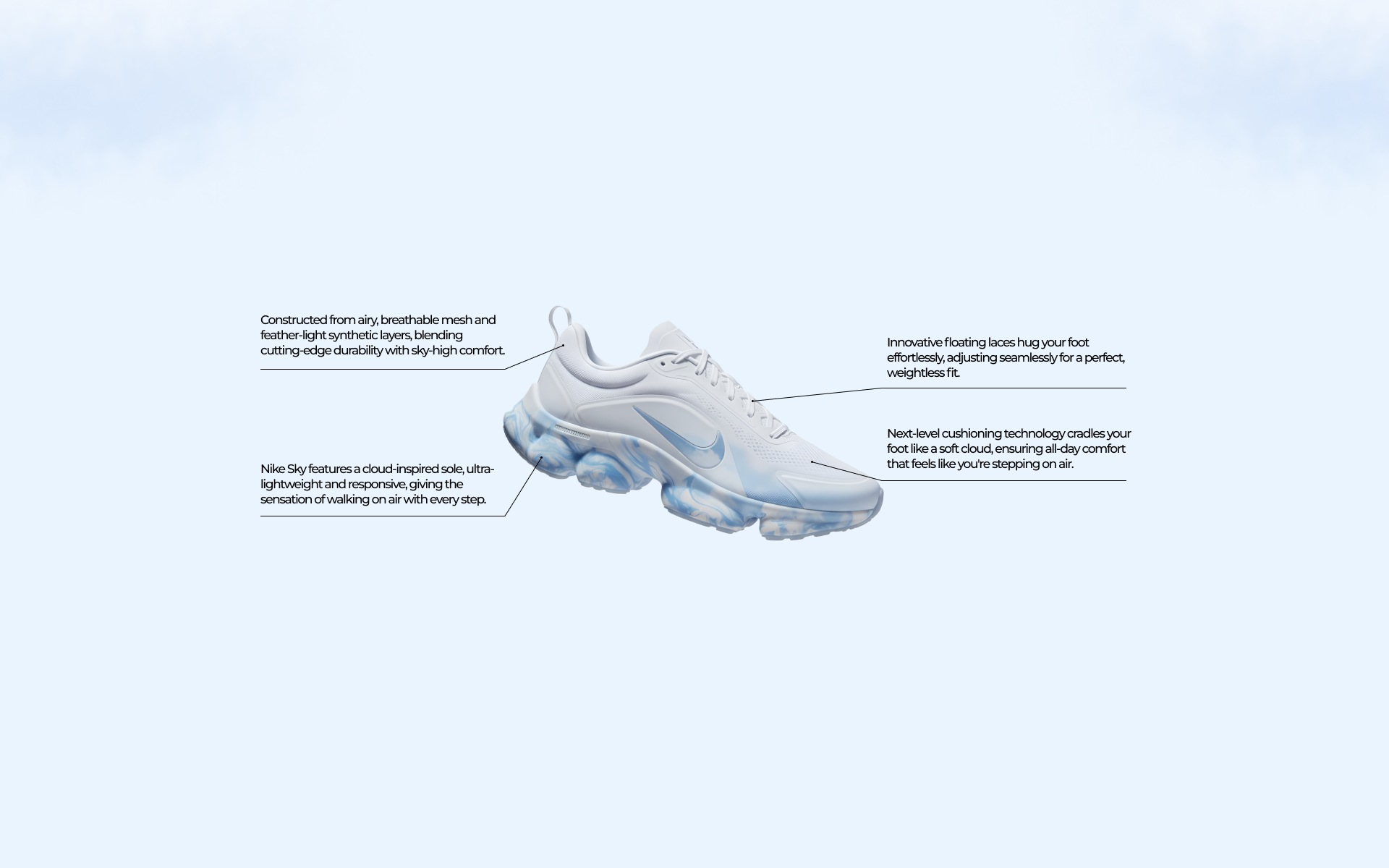 To design an immersive landing page for Nike Sky, a limited-edition sneaker collection inspired by clouds — lightweight, comfortable, and visually minimal.